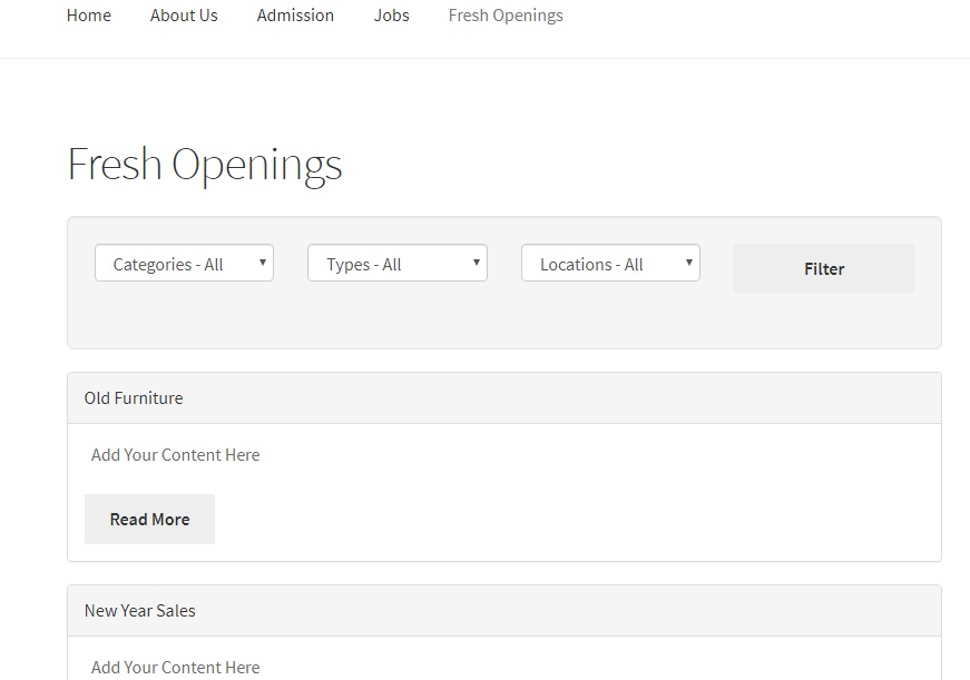 On the frontend, click on Fresh Openings tab, and you can see all your ads on one page or location.